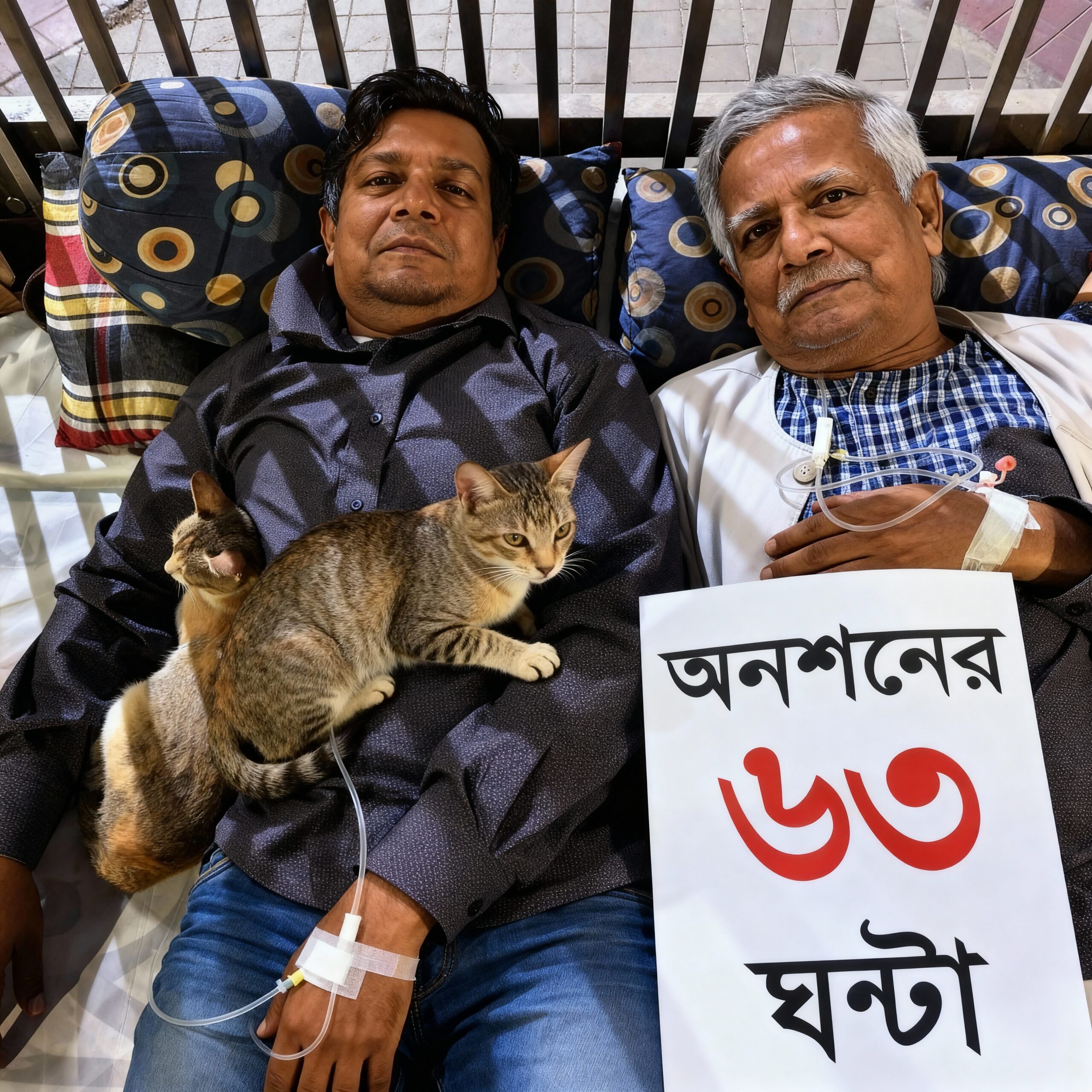 ডঃ ইউনুসের এই অনশন যদি সফল হয়, তাহলে রাজনীতিতে নতুন ট্রেন্ড আসবে – ‘অনশন ফর এক্সিট’! কিন্তু যদি না হয়, তাহলে অন্তত তিনি প্রমাণ করবেন যে নোবেল জিতলেও ‘তুই’ শুনে ভয় পাওয়া যায়।