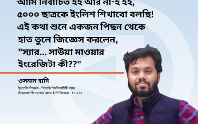 আমি নির্বাচিত হই আর না-ই হই, ৫০০ ছাত্রকে ইংলিশ শেখাবো বলছি! এই কথা শুনে একজন পিছন থেকে হাত তুলে জিজ্ঞেস করলেন, “স্যার… সাউয়া মাওয়ার ইংরেজিটা কী?”